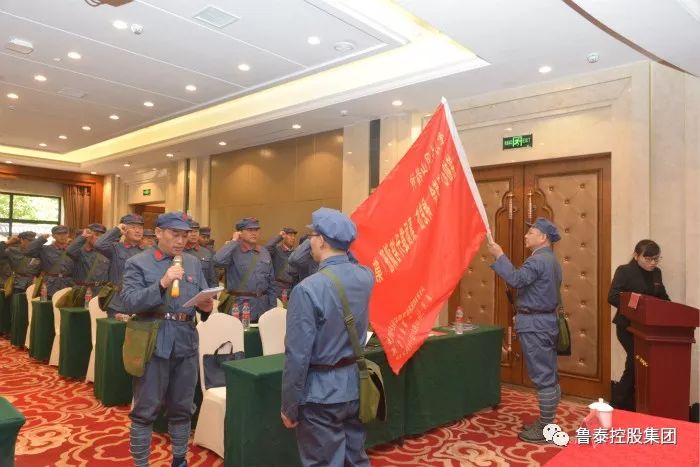 汤保民带领全体学员面对班旗,举起右手,庄严宣誓:“学习革命先烈,继承先辈遗志,发扬光荣传统。坚定执着追理想、实事求是闯新路、艰苦奋斗攻难关、依靠群众求胜利。清正廉洁自律,自觉无私奉献,为全面建成小康社会,实现伟大的‘中国梦’而努力奋斗!”